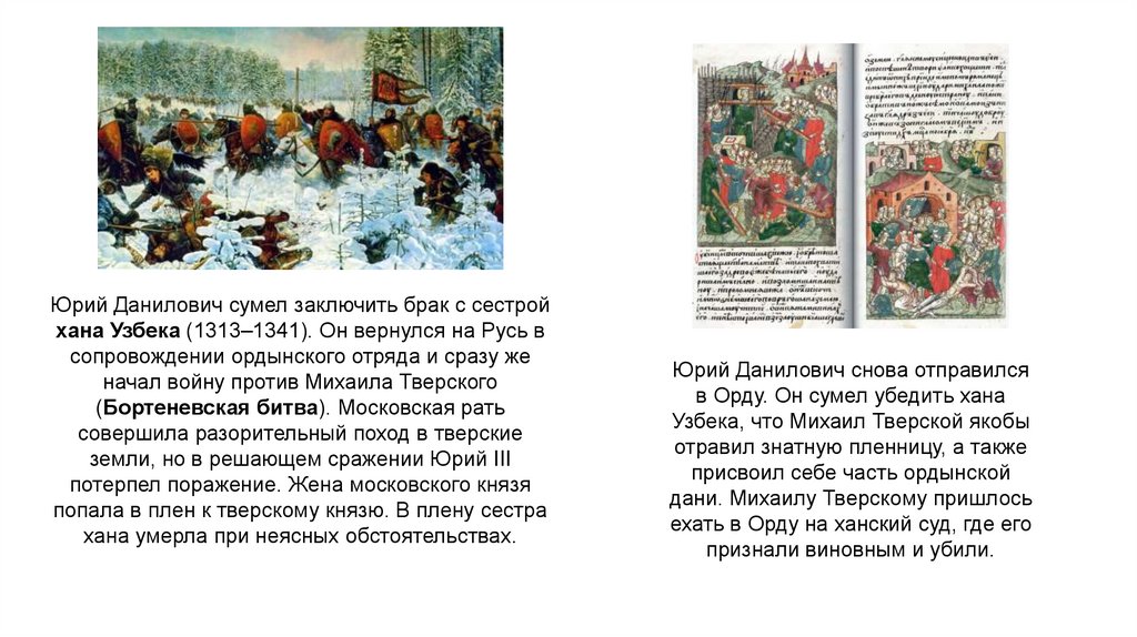 Юрий Данилович сумел заключить брак с сестройхана Узбека (1313‒1341). Он вернулся на Русь в
