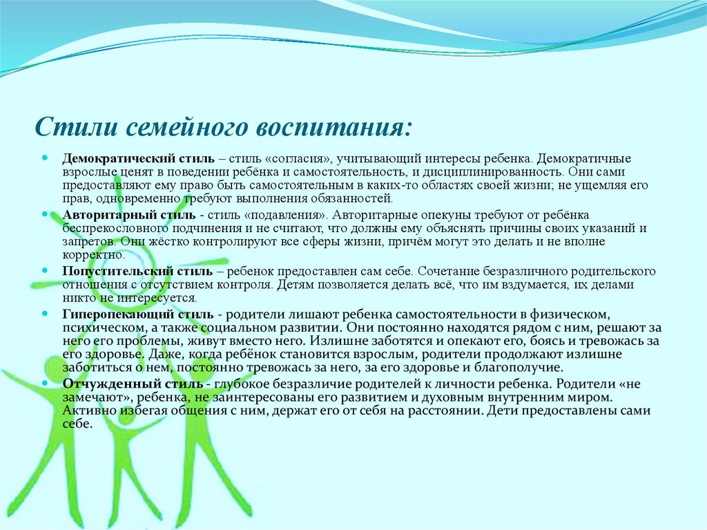 Попустительский стиль – ребенок предоставлен сам себе. Сочетание безразличного родительского