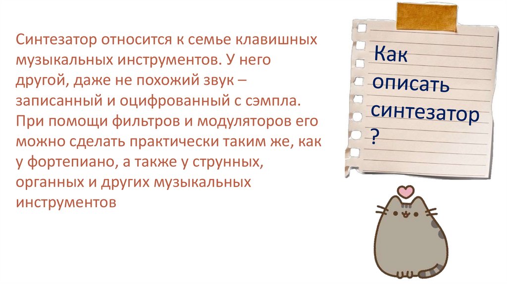 Синтезатор относится к семье клавишныхмузыкальных инструментов. У него