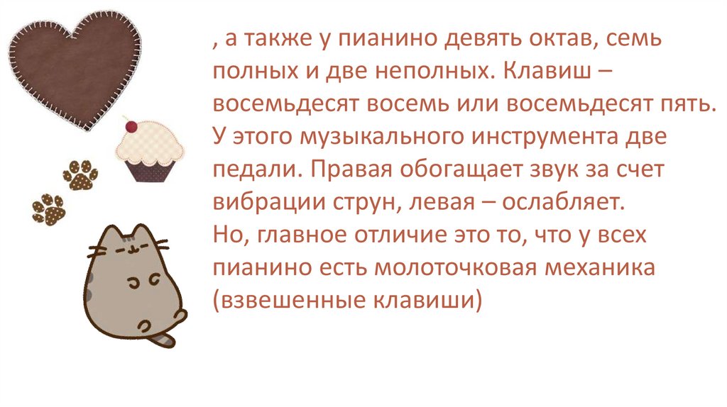 , а также у пианино девять октав, семьполных и две неполных. Клавиш –