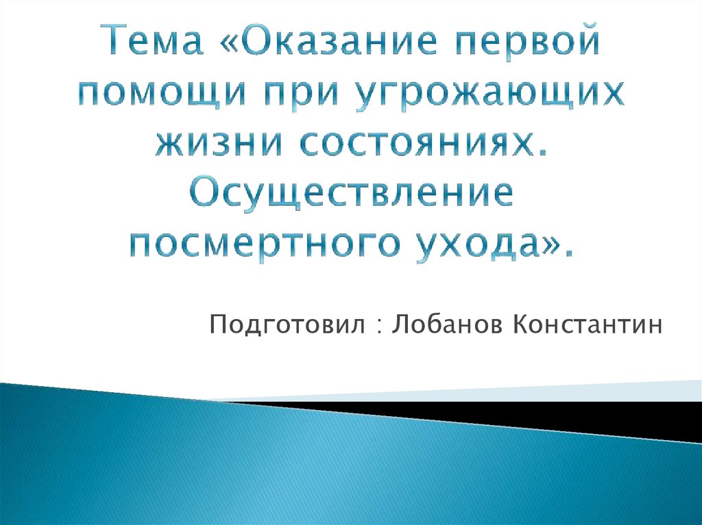 1. Тема «Оказание первой помощи при угрожающих жизни состояниях. Осуществление посмертного ухода».