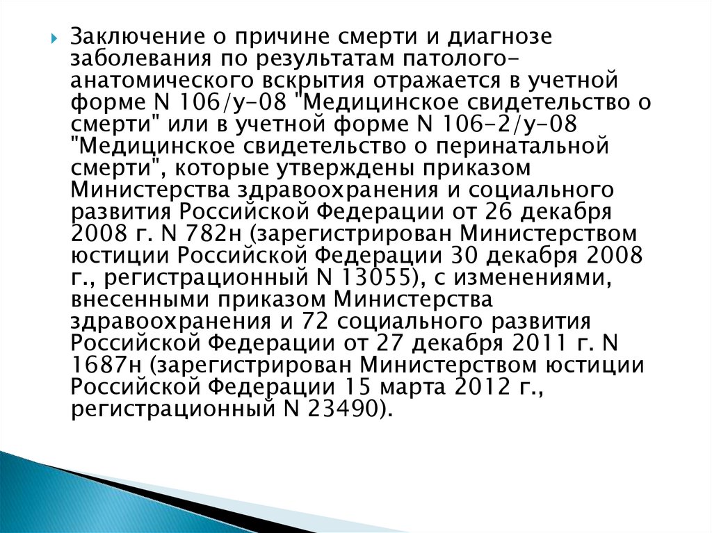 Заключение о причине смерти и диагнозезаболевания по результатам патологоанатомического вскрытия отражается в учетной
