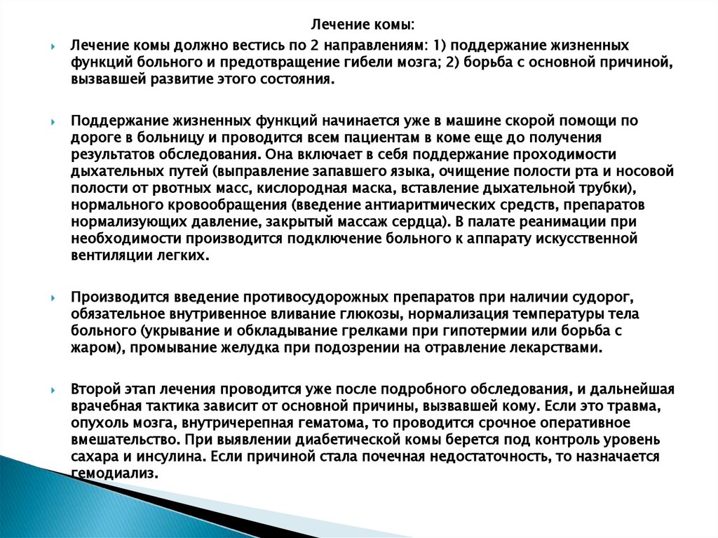 со слегка приподнятыми ногами. При рвоте голову поворачивают так, чтобы