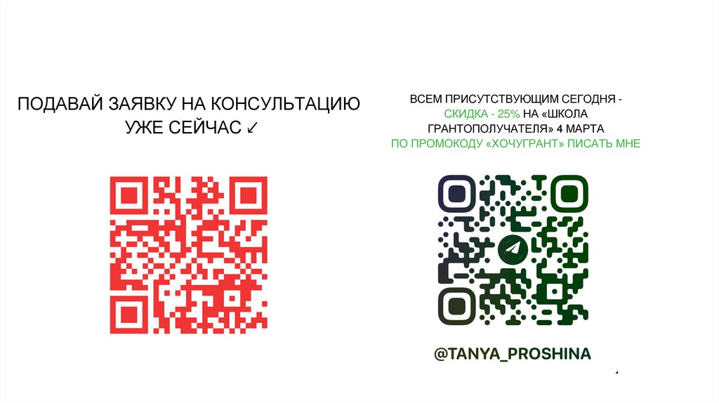ПО ПРОМОКОДУ «ХОЧУГРАНТ» ПИСАТЬ МНЕ