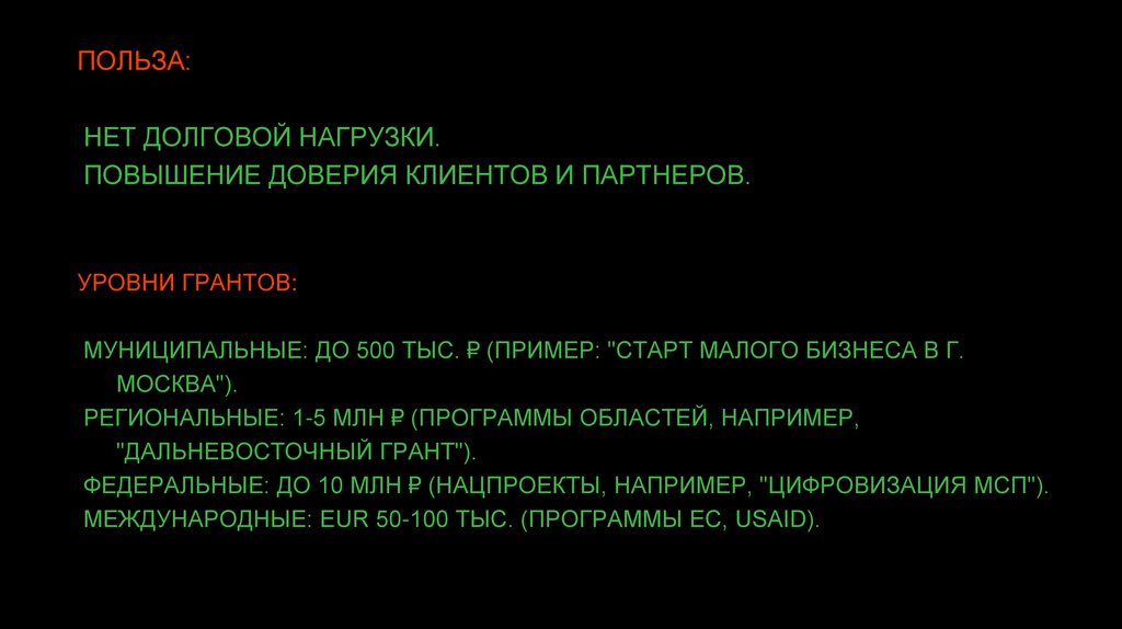МУНИЦИПАЛЬНЫЕ: ДО 500 ТЫС. ₽ (ПРИМЕР: "СТАРТ МАЛОГО БИЗНЕСА В Г.