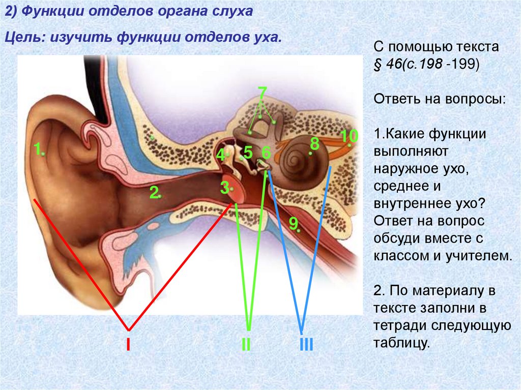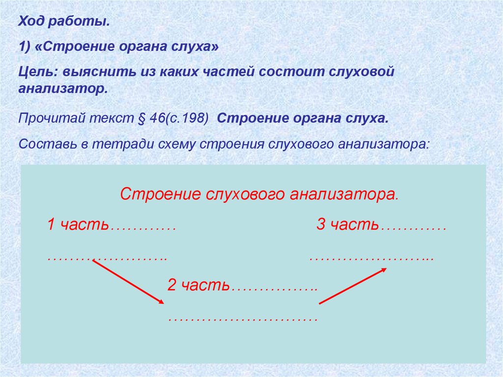 Прочитай текст § 46(с.198) Строение органа слуха.
