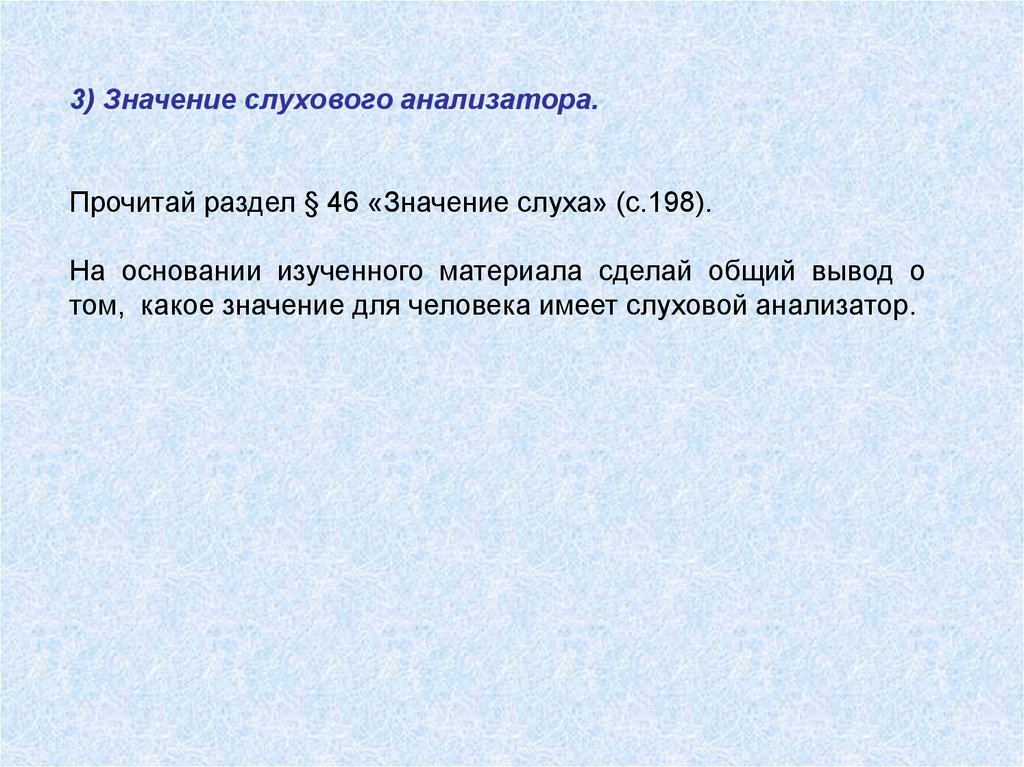 3) Значение слухового анализатора.Прочитай раздел § 46 «Значение слуха» (с.198).