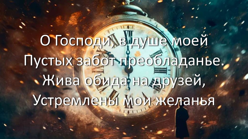 О Господи, в душе моейПустых забот преобладанье.