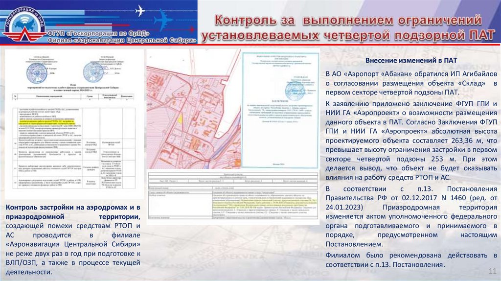 Внесение изменений в ПАТКонтроль застройки на аэродромах и в