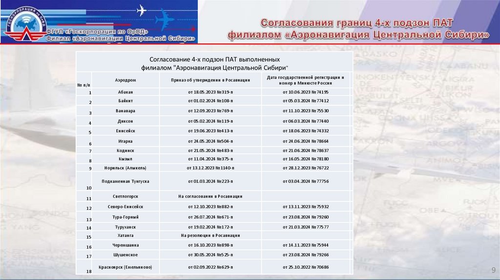 представления проектов Решений по установления ПАТ операторами аэродромов.