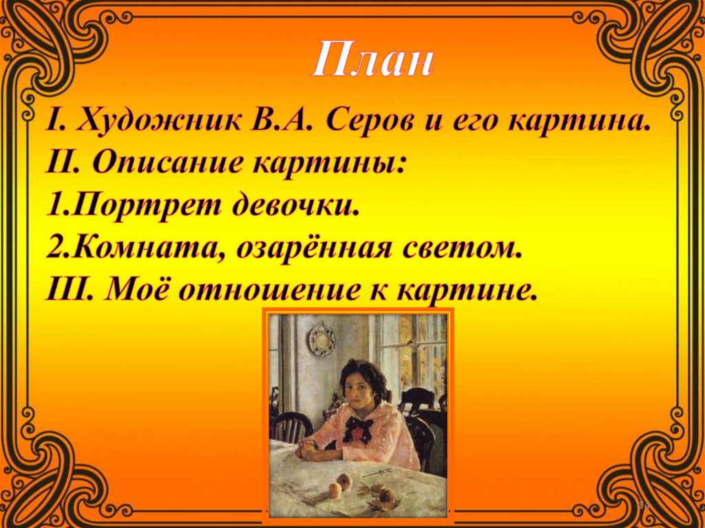 Подготовка к сочинению-описанию картины В. Серова "Девочка с персиками"