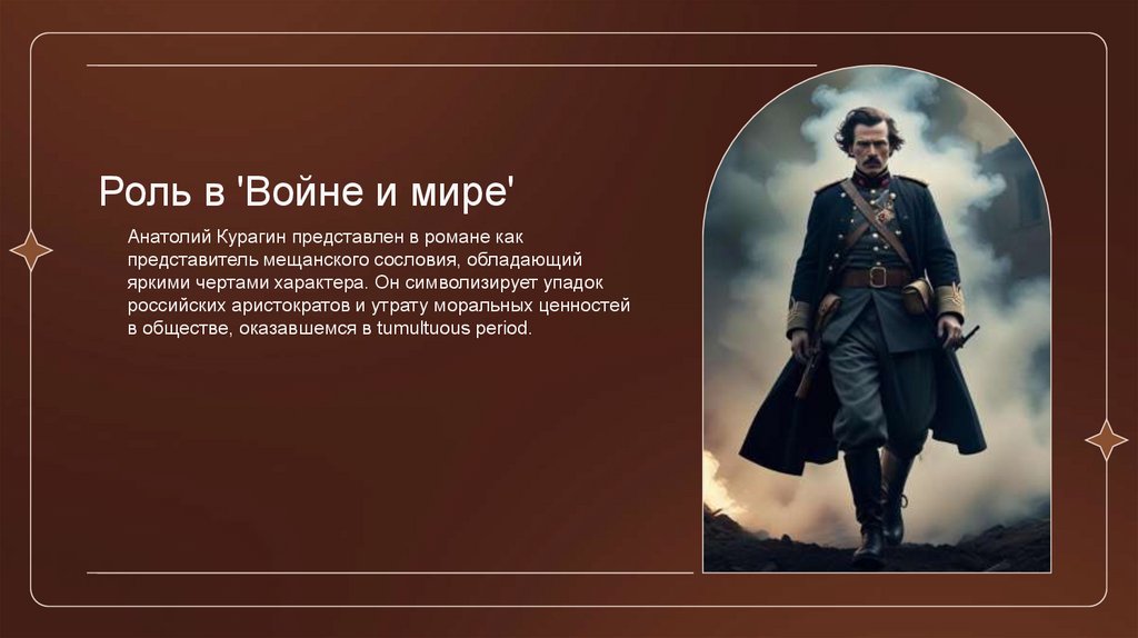 Роль в 'Войне и мире'Анатолий Курагин представлен в романе как