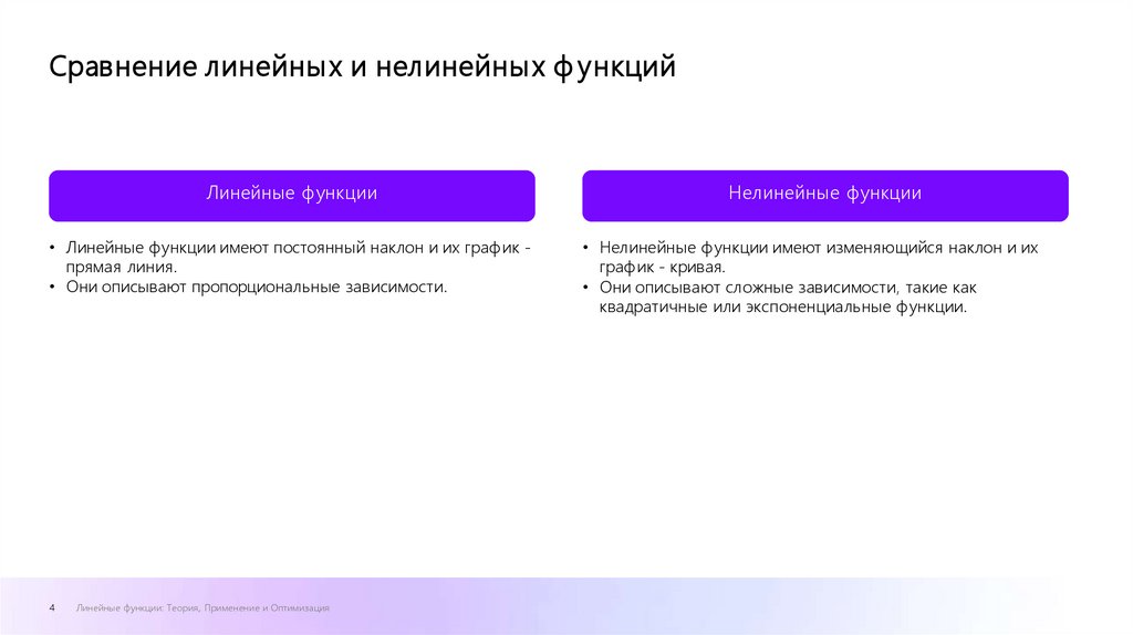 Сравнение линейны х и нелинейны х ф ункцийЛинейные функции