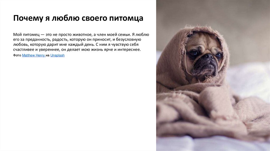 Почему я люблю своего питомцаМой питомец — это не просто животное, а член моей семьи. Я люблю