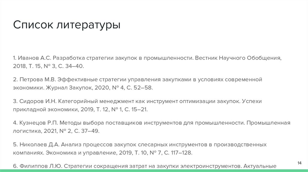 Список литературы1. Иванов А.С. Разработка стратегии закупок в промышленности. Вестник Научного Обобщения,