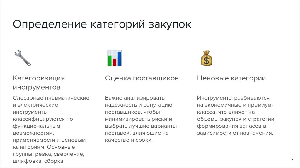 ЦельРазработка и внедрение категорийной стратегии закупок слесарных пневматических и