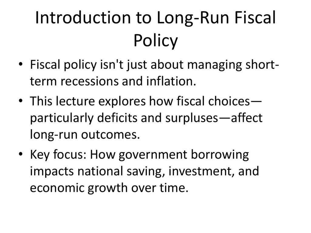 • Fiscal policy isn't just about managing shortterm recessions and inflation.
