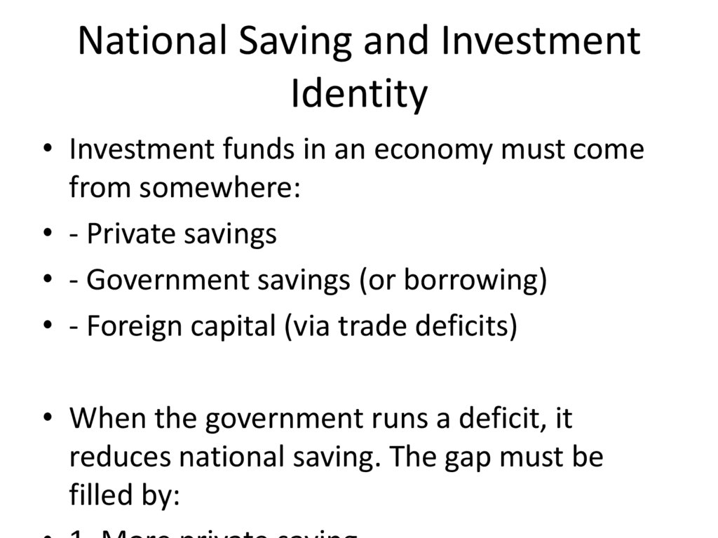 • Investment funds in an economy must come