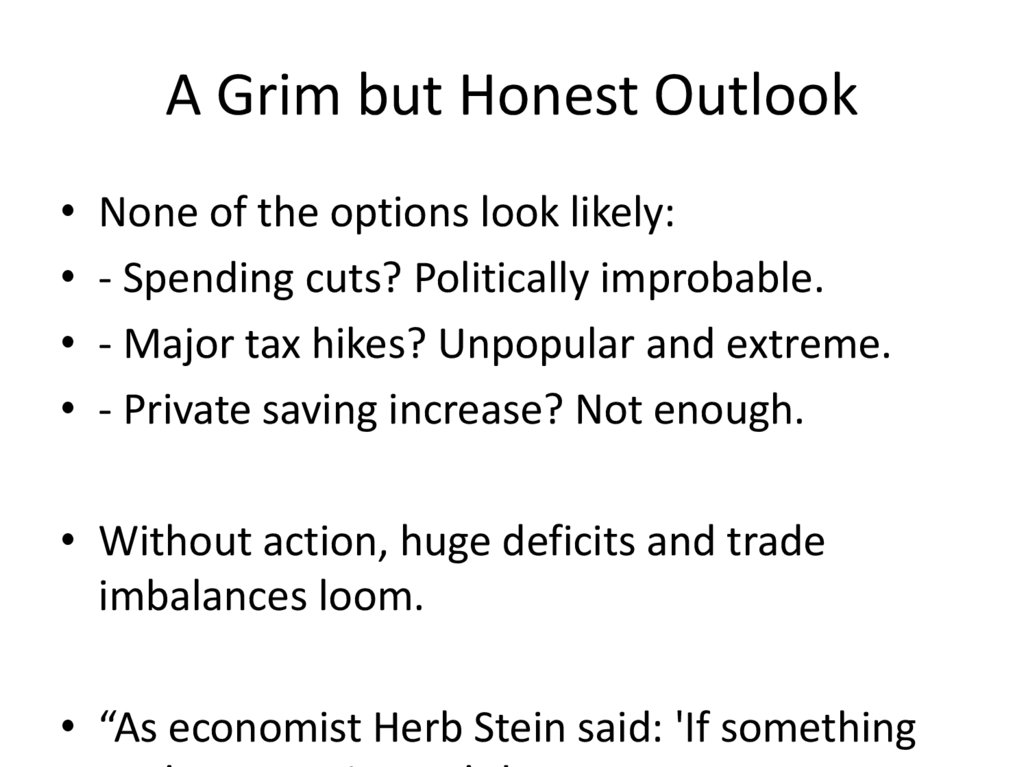 A Grim but Honest Outlook• None of the options look likely: