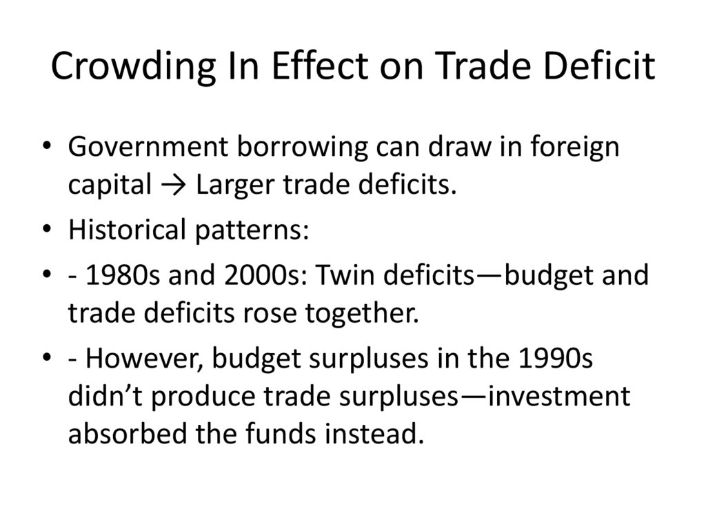 Crowding In Effect on Trade Deficit• Government borrowing can draw in foreign