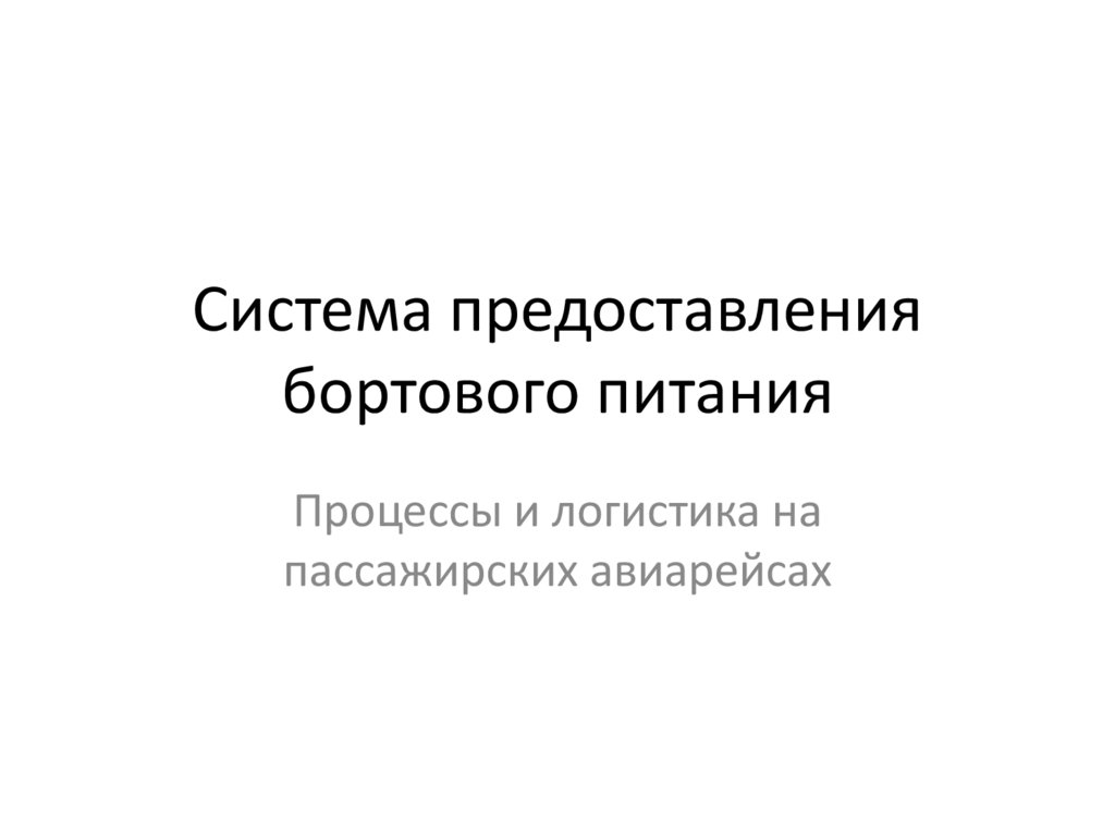 Система предоставления бортового питания Процессы и логистика на пассажирских авиарейсах