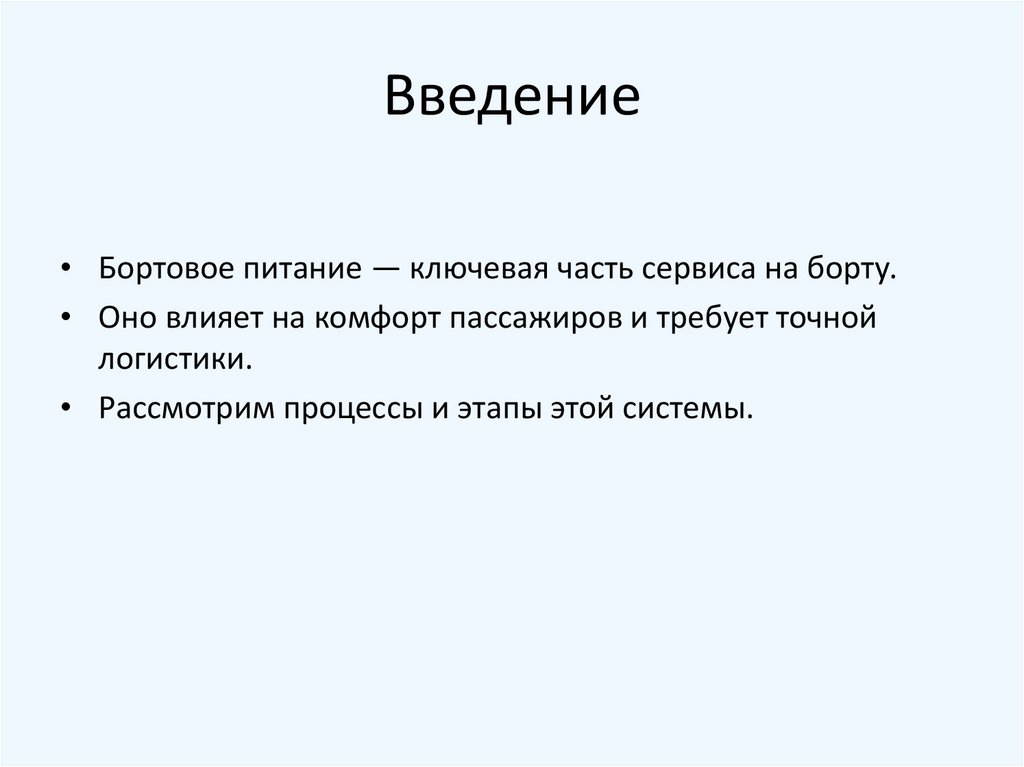 Введение• Бортовое питание — ключевая часть сервиса на борту.