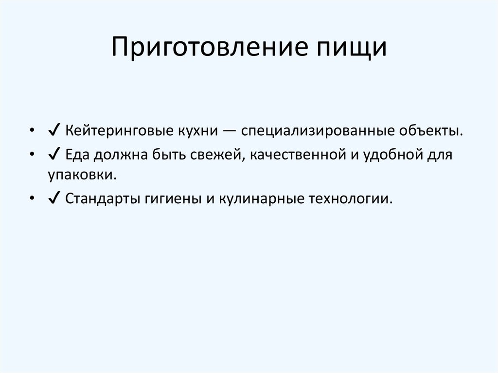Приготовление пищи• ✔ Кейтеринговые кухни — специализированные объекты.