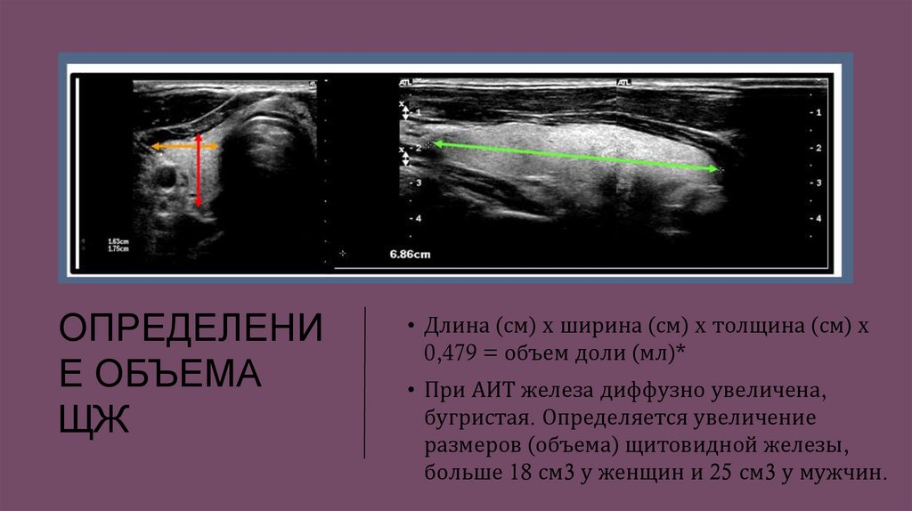 размеров (объема) щитовидной железы,