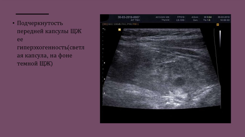 • Подчеркнутостьпередней капсулы ЩЖ