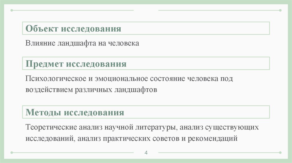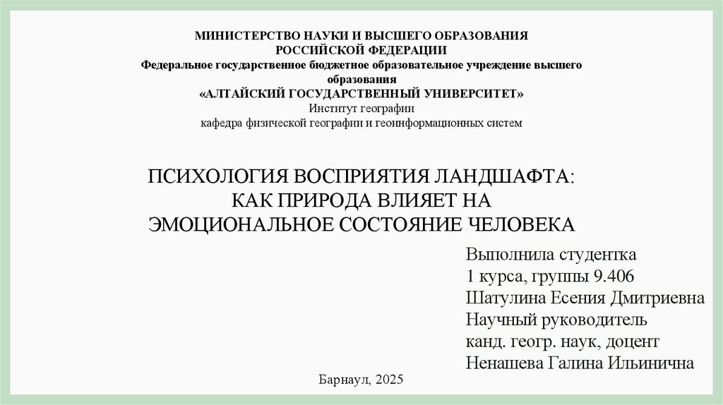 Цель: изучить психологию восприятия ландшафта и влияниеприроды на эмоциональное состояние человека