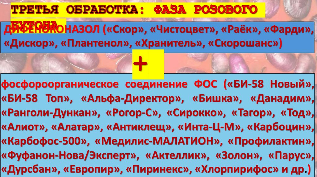 Супер», «Тиара», «Эфория» и др.). ЦЕЛЬ – борьба с пятнистостями и дидимеллой,