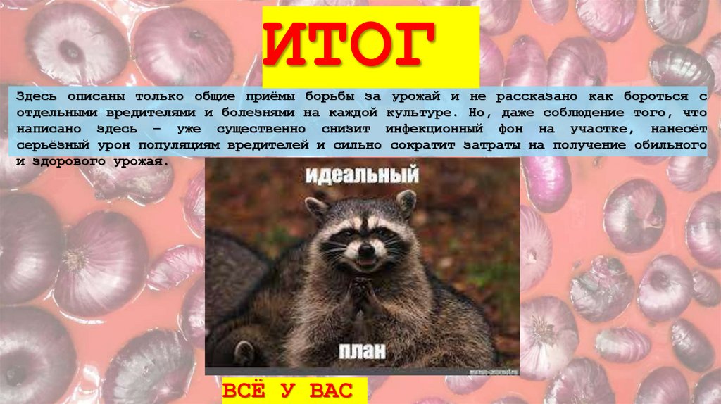 ИТОГЗдесь описаны только общие приёмы борьбы за урожай и не рассказано как бороться с