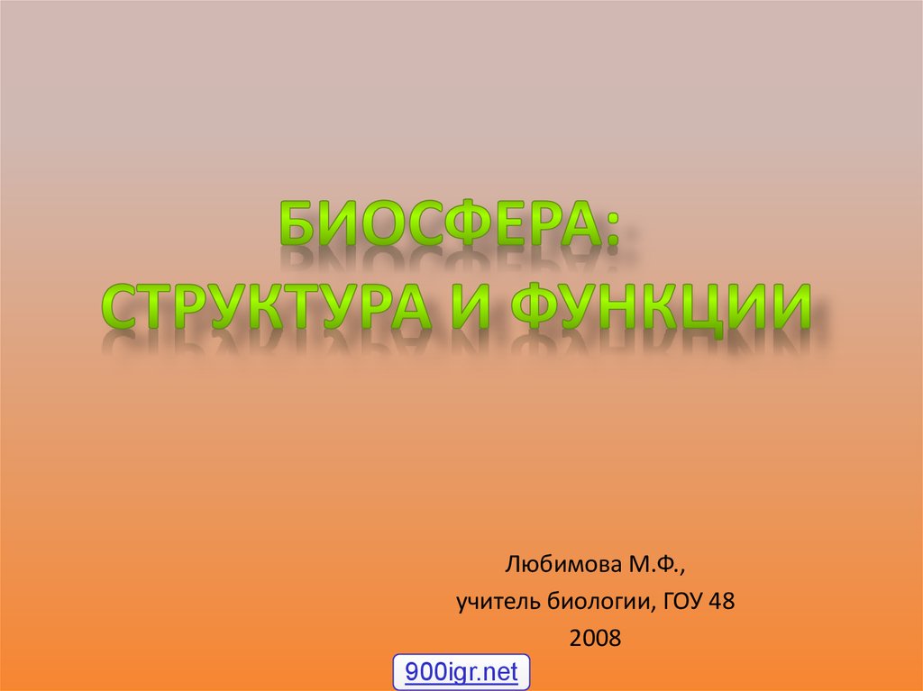Любимова М.Ф.,учитель биологии, ГОУ 48