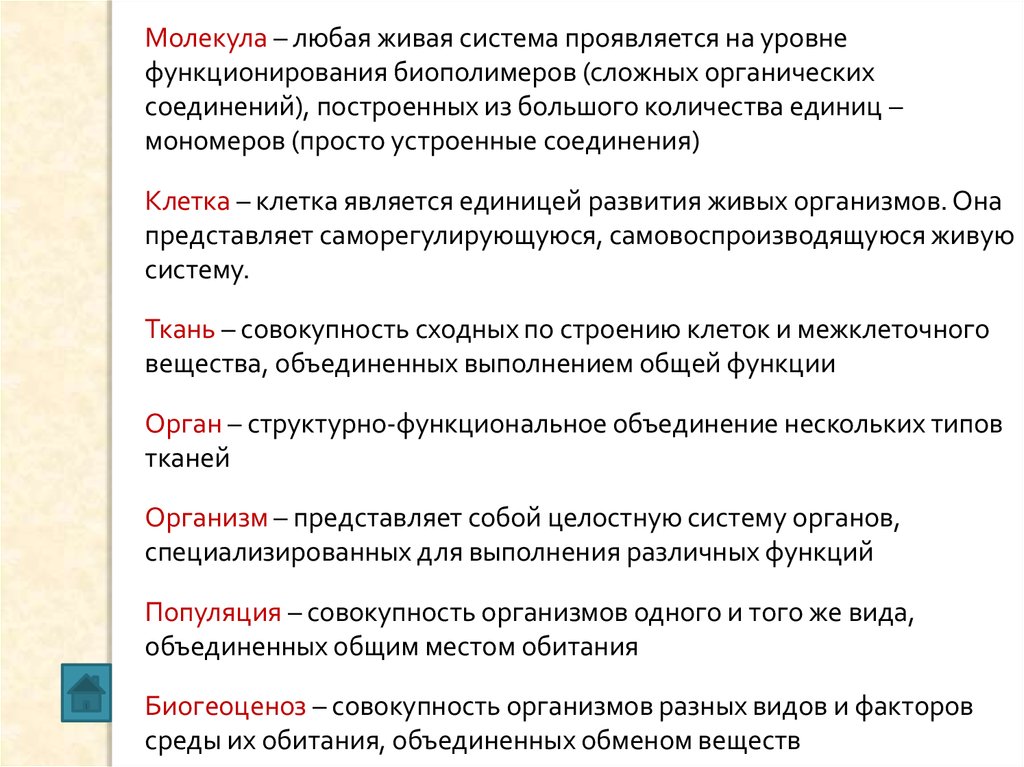 Молекула – любая живая система проявляется на уровнефункционирования биополимеров (сложных органических