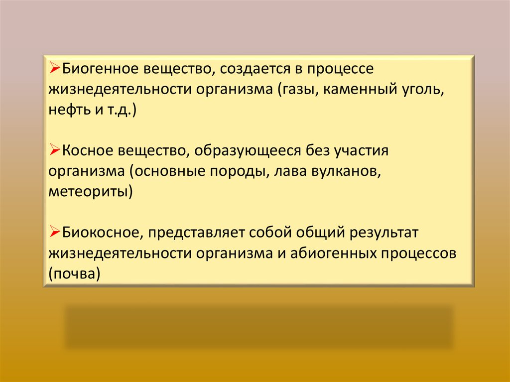Биогенное вещество, создается в процессежизнедеятельности организма (газы, каменный уголь,