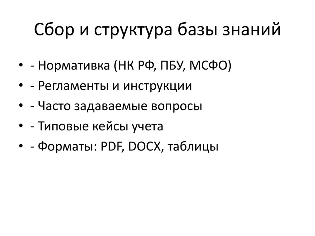 Сбор и структура базы знаний• - Нормативка (НК РФ, ПБУ, МСФО)