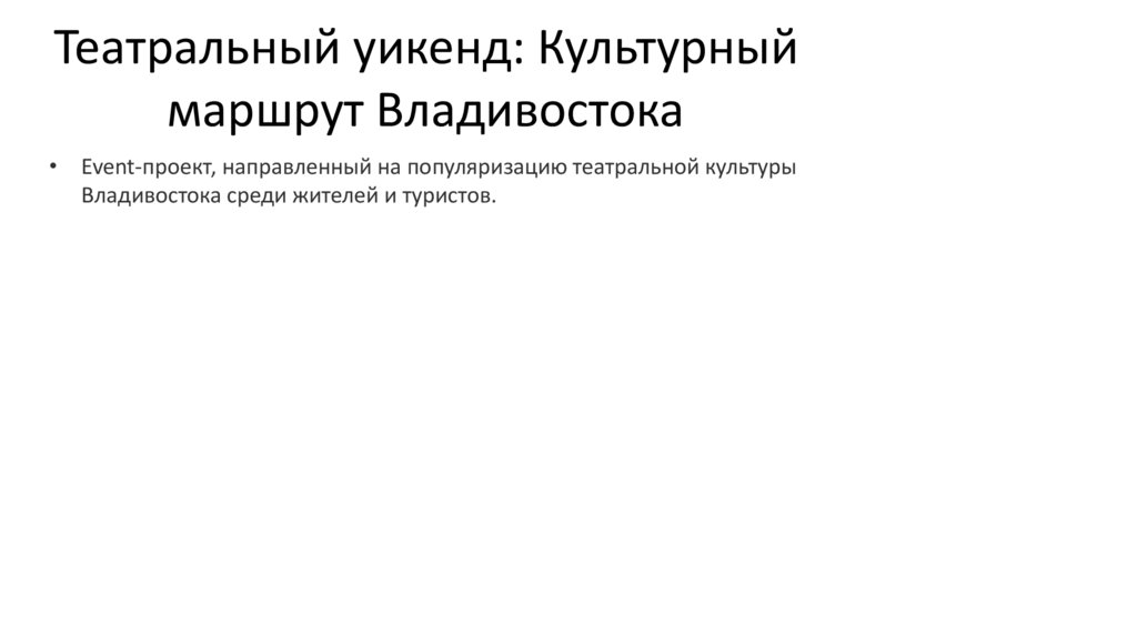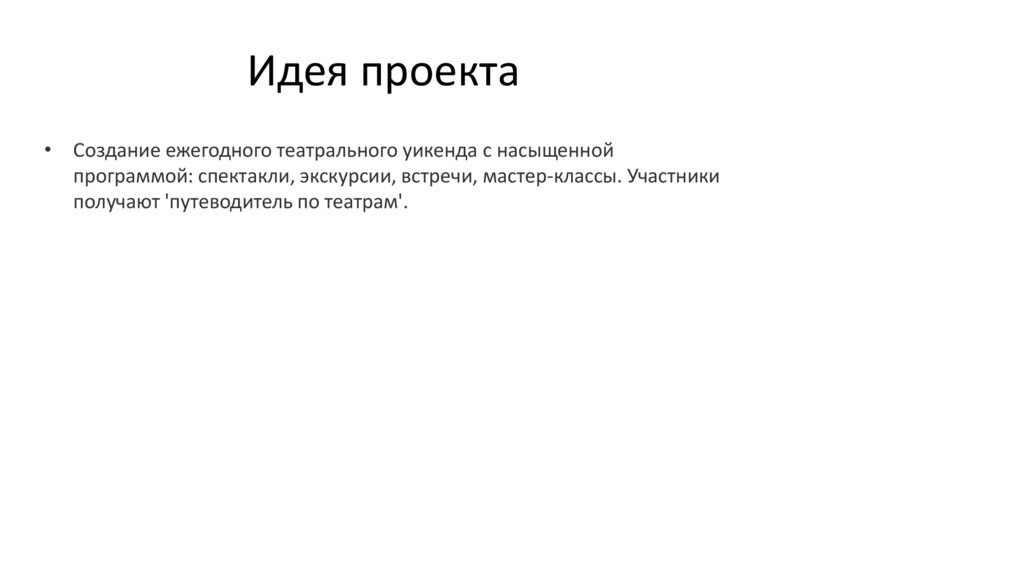 Идея проекта• Создание ежегодного театрального уикенда с насыщенной