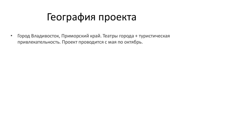 География проекта• Город Владивосток, Приморский край. Театры города + туристическая