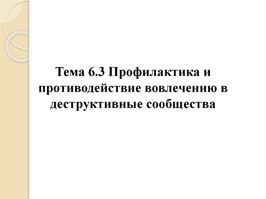 Тема 6.3 Профилактика и противодействие вовлечению в деструктивные сообщества