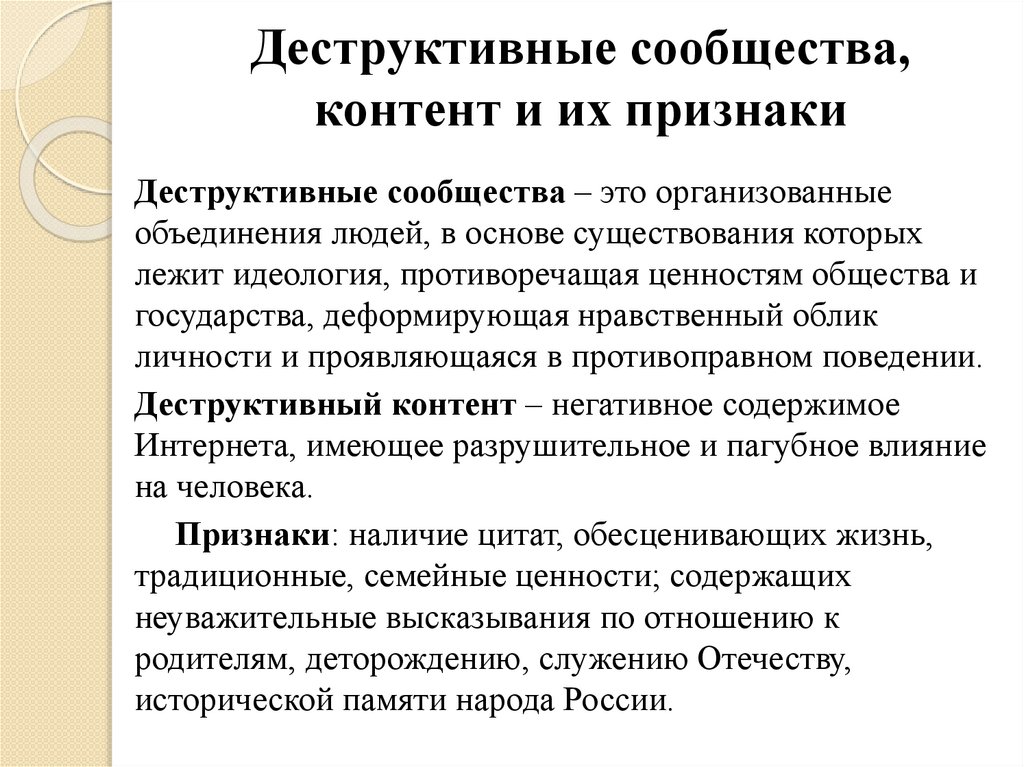 Деструктивные сообщества,контент и их признаки