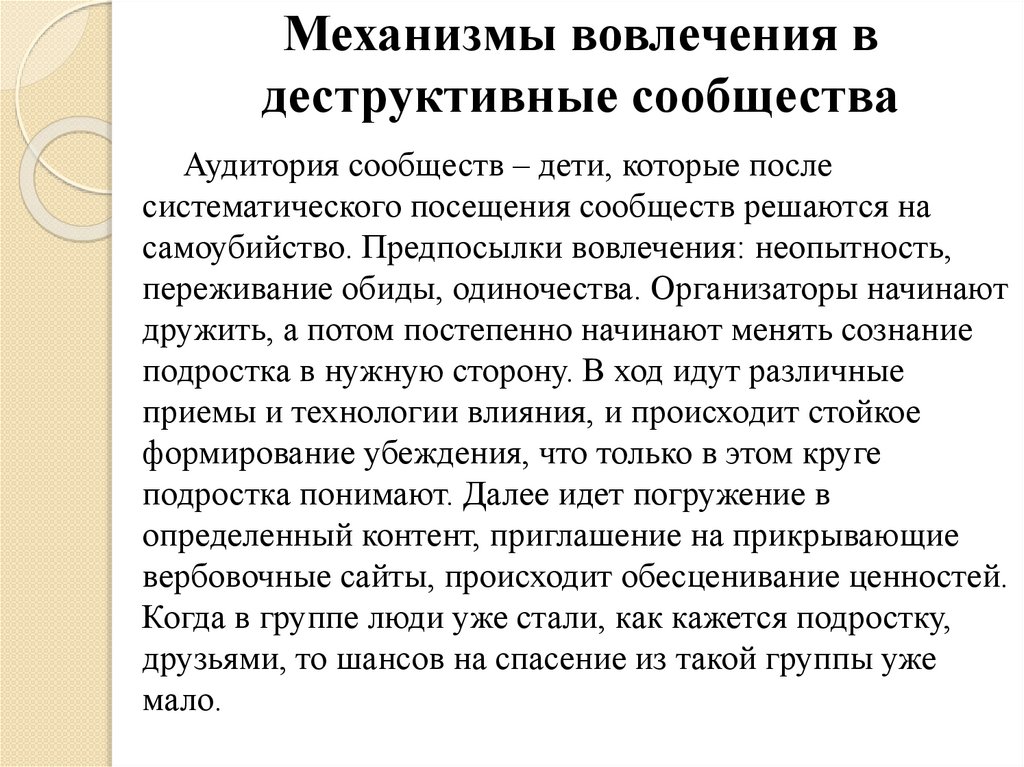 Механизмы вовлечения вдеструктивные сообщества