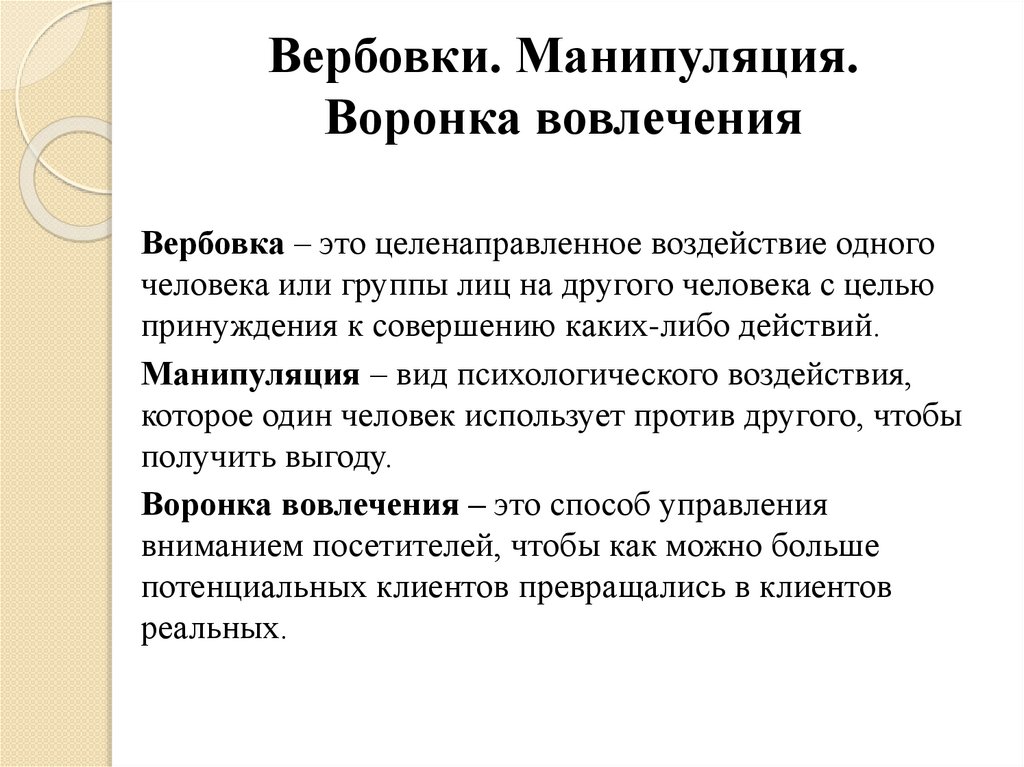 Вербовки. Манипуляция.Воронка вовлечения