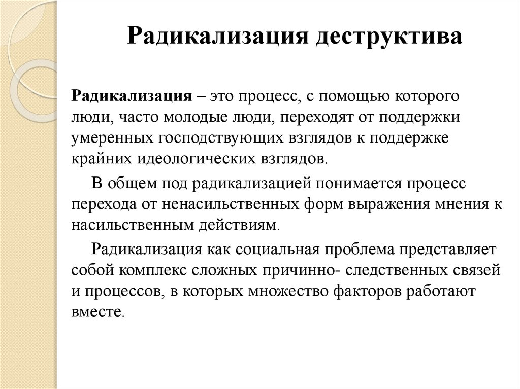 Радикализация деструктиваРадикализация – это процесс, с помощью которого