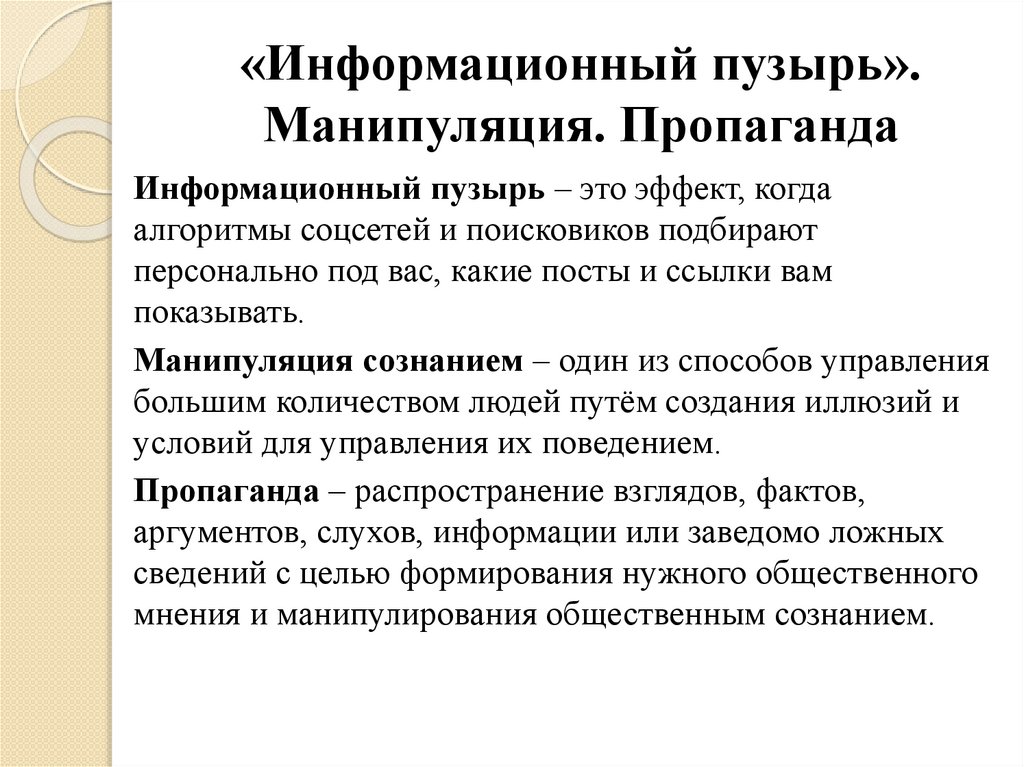 «Информационный пузырь».Манипуляция. Пропаганда
