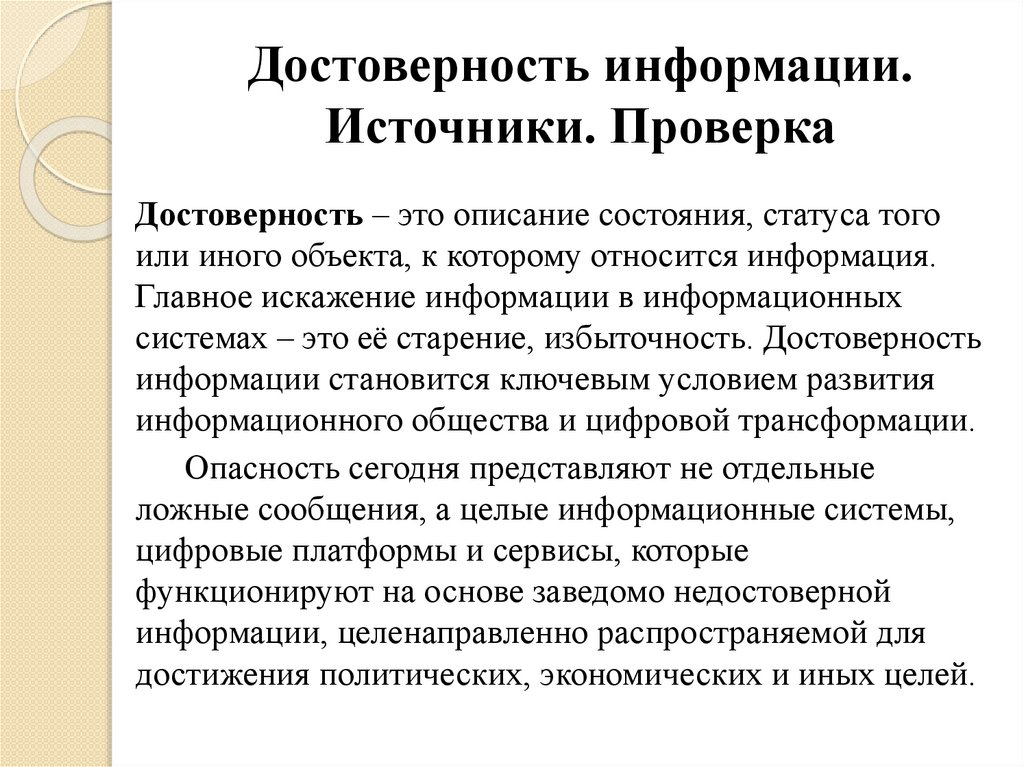 Проверка достоверностиинформации