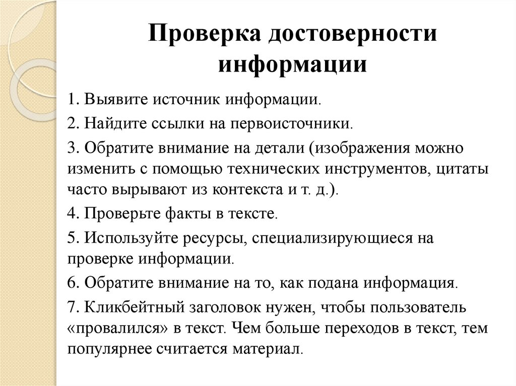 Достоверность информации.Источники. Проверка
