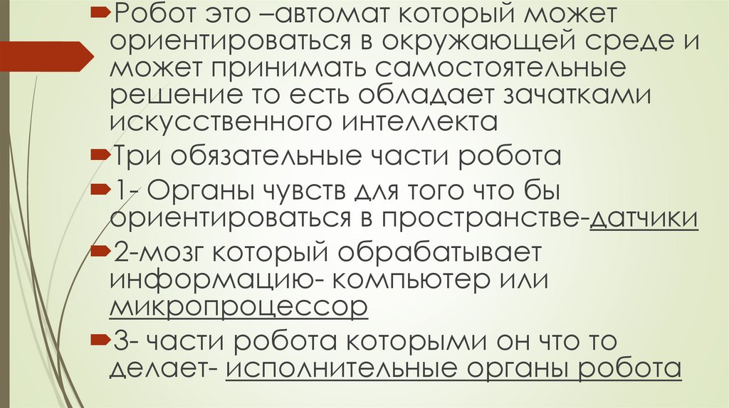 Робот это –автомат который можеториентироваться в окружающей среде и