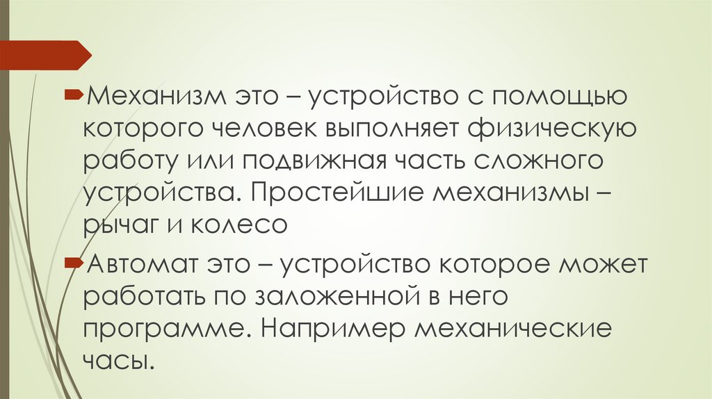 Механизм это – устройство с помощьюкоторого человек выполняет физическую