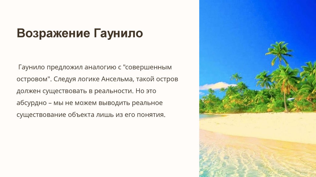 Возражение ГаунилоГаунило предложил аналогию с "совершенным