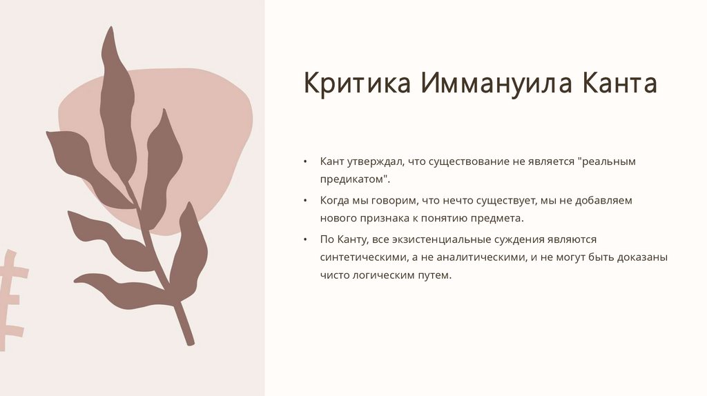 Критика Иммануила КантаКант утверждал, что существование не является "реальным